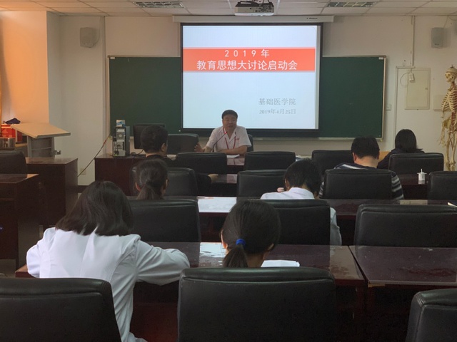 为深入贯彻落实全国教育大会精神,为我校本科内涵建设和各类评估工作夯实基础,基础医学院积极贯彻落实学校相关精神,于4月25日下午召开2019年基础医学院教育思想大讨论启动大会。会议由基础医学院直属党支部书记程伟主持,学院全体教师出席会议。
