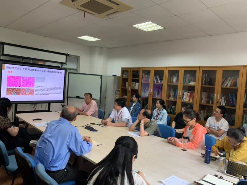 6月19日,我院李志宏老师在基础医学院学术沙龙上,向学院教师汇报了自己的相关研究工作。在之前的文献检索中,李老师课题组发现文献中相关支持线索,于是想观察去甲肾上腺素是否会引起小鼠肾小管上皮的某些变化,并进行了相关的动物实验,此次李老师就自己的科研思路以及现有结果跟大家分享。参会聆听的老师也就相关问题给了建议和讨论,推动了研究更深入的进行。(基础医学院)