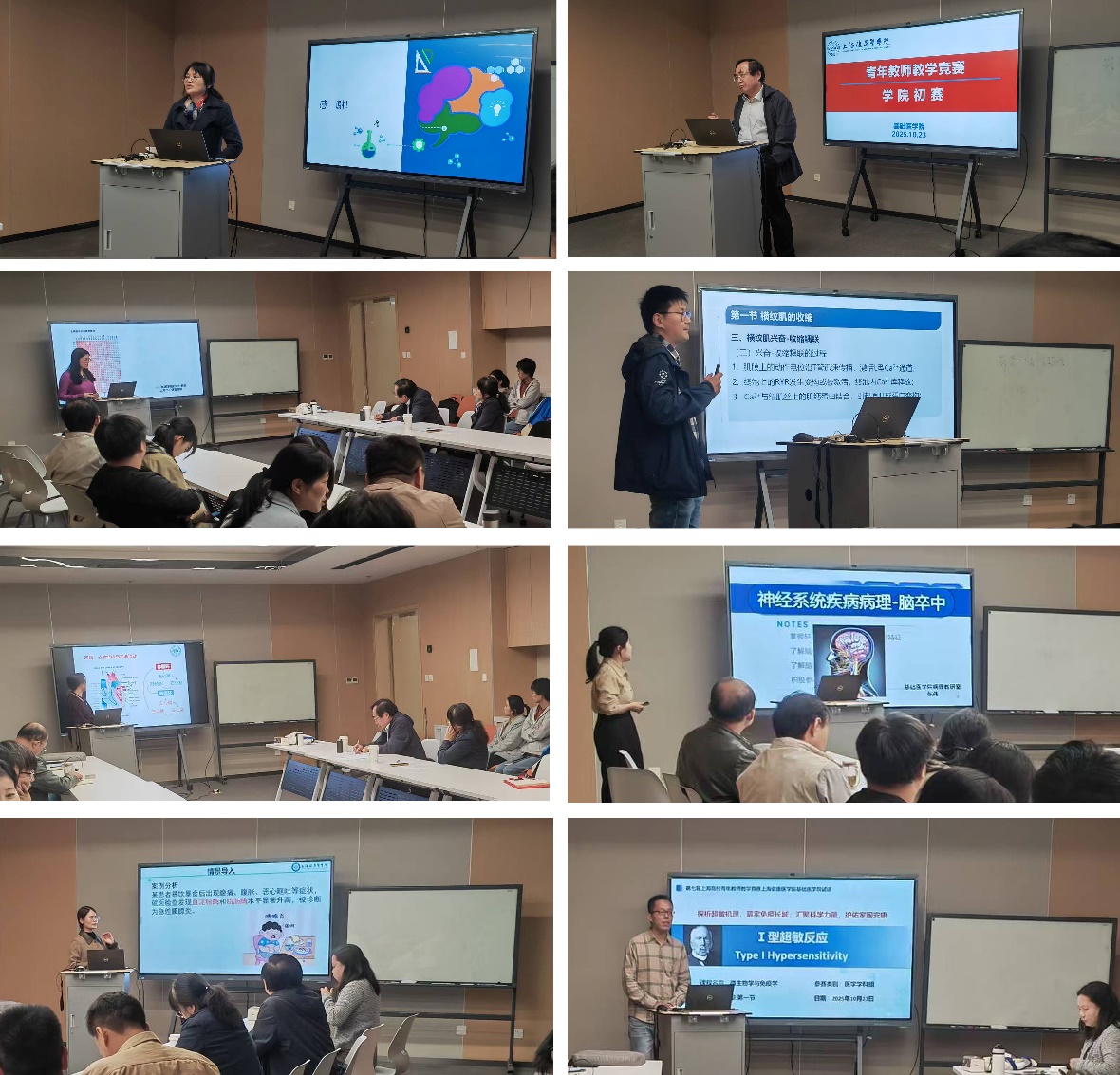 本次竞赛严格参照市级竞赛标准,设置教学设计、课堂讲授、教学反思三个环节,内容涵盖课程思政融入、教学方法创新、重难点突破等核心维度。参赛教师围绕《免疫学》、《病理学》、《生理学》和《生物化学》等专业课程,结合案例教学、多媒体演示等多样化教学手段,呈现了15分钟的精彩课堂片段。