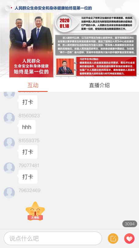 李堃:今天的直播课,让我更加坚定了“四个自信”,尤其是其中的制度自信更是体现得淋漓尽致。在这样一个“不划重点的突击闭卷考”面前,在党中央的坚强领导下,以人民群众的生命安危为第一,调动全国资源,团结一心,最终给世界人民提供了一份几乎满分的答卷。一线的医务工作者,在恰逢中国人民最重要的节日“春节之际,舍小家为大家,这正是中国人民的可爱之处。除医务工作者,志愿者,警察,快递等等各行各业的群众组成了抗疫一线的集体群像。校长和书记的讲话,让我感觉到我也同样肩负着培养下一代医务工作者的责任,同样肩负着人民健康的使命。疫情终将过去,我们因牢记使命,培养合格的医务人才,守护人民健康。
