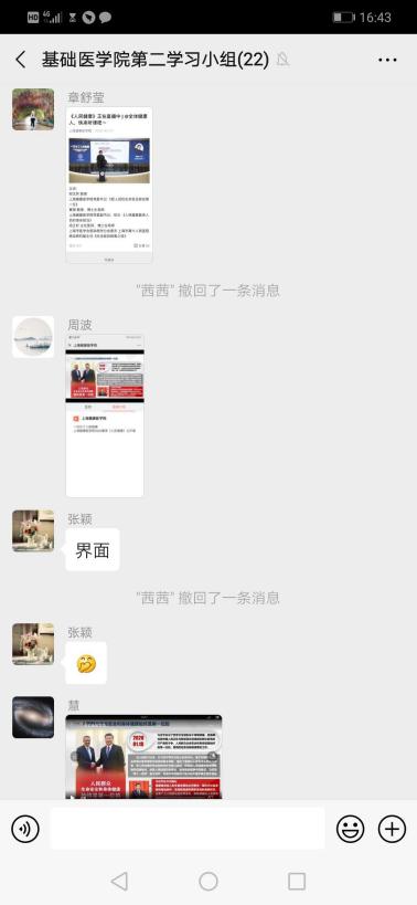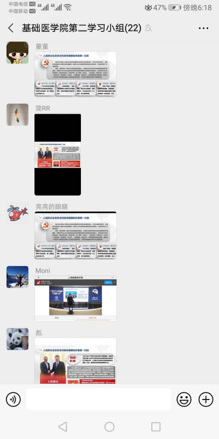 章舒莹:生命重于泰山。急群众之所急,解群众之所忧。习近平总书记发表重要讲话,必须“把人民群众生命安全和身体健康放在第一位”。今天,在听了郑书记,黄校长,汤主任的报告后再一次被此次疫情中的医务人员——最美“逆行者”们的事迹所感动,同时也强烈地感受到我们党对人民健康高度负责的情怀与担当,为坚决打赢疫情防控阻击战注入的强大信心和动力。作为医学院校一名普通党员教师,虽不能在一线工作,但也肩负着重要的使命担当,我们要努力培养好未来的白衣天使和医工技师,在未来的工作中,心中有学生,立足本职工作,尽自己所能做好学院日常管理和服务工作,为教师学生服务,确保学院学校工作运行,让我们一同努力,共克时艰,当我们脱下口罩之时,就是见面之日,共同期待。