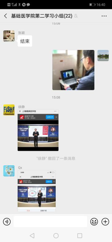 基础医学院组织全院教师在线学习了本次《人民健康》课。大家仔细听讲,认真思考,热烈讨论,积极交流,真切感受到,正是有了以党的坚强领导,我们的各项事业才取得了举世瞩目的成就,也才能在较短时间内实现抗击新冠肺炎疫情的根本好转和最终胜利。作为医学院校的教育工作者,我们应该自觉担负使命,以学生为中心,扎根课堂,埋头苦干,潜心育人,为培养社会需要的人才多做贡献。许多老师自觉把感想发在群里,共同学习,互相鼓励,携手共进。