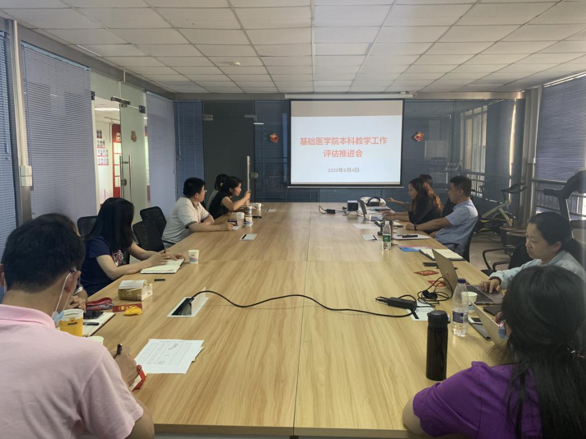 为落实落细《上海健康医学院本科教学工作合格评估学校自评实施方案》(上健医〔2020〕68 号),契合基础医学院2020年思想大讨论活动,学院于2020年6月4日在北苑4号楼600召开了本科教学工作评估推进会。会议由基础医学院院长杨智昉主持,直属党支部书记程伟、副院长汪慧菁及各教研室主任、干事参加会议。