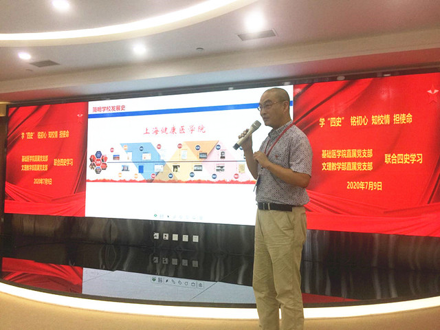 7月9日下午,文理教学部直属党支部与基础医学院直属党支部在南苑图书馆五楼会议室联合举行“学‘四史’铭初心,知校情担使命”主题党日活动。活动由文理教学部直属党支部书记秦禹权主持,两个支部的全体党员、民主党派代表一起参加了此次主题党日活动。
