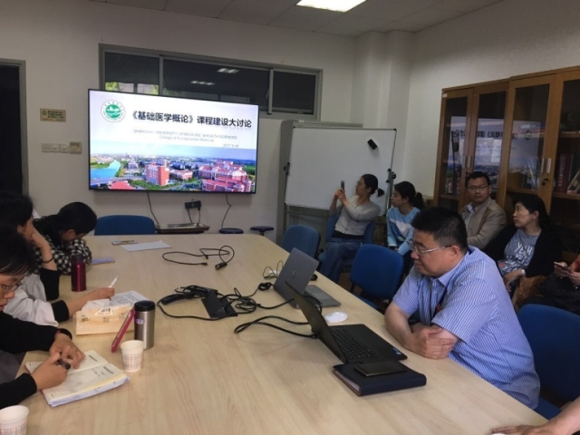 接着,教师们主要针对“如何组建教学团队?”、“教学团队师资如何培养?”、“教材和实验内容如何整合?”、“课程建设围绕哪些主要内容进行建设”四个方面展开了教育思想大讨论。比如,整合教材要有特色化。按照从宏观到微观,从形态到功能,从正常到异常,从疾病到治疗药物的原则进行课程整合。根据医工结合非医学专业的专业特点和就业需要让学生能主动阅读,并能使用所学习的医学语言去解释医学现象为目标,不宜过于深奥。组织多学科交流,让教师互相学习学科知识点。在教研室人员不变的基础上,组建新的虚拟的课程组,在完整的课程组下组织教师的教学活动,有利于课程整合广度的深度提高。