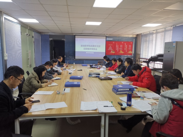 2021年1月21日,党委巡察办一行9人在校党委副书记、纪委书记、巡察领导小组副组长、巡察办主任李明磊的带领下,到北苑4号楼600会议室召开基础医学院直属党支部巡察整改督查会。组织部部长、巡察办副主任郭戎静,纪委办主任、巡察办副主任郑学文,纪委办副主任、巡察办成员施奇、巡察办和检查组相关人员以及基础医学院党政班子成员及巡察整改工作小组成员出席。会议由纪委办副主任、巡察办成员施奇主持。