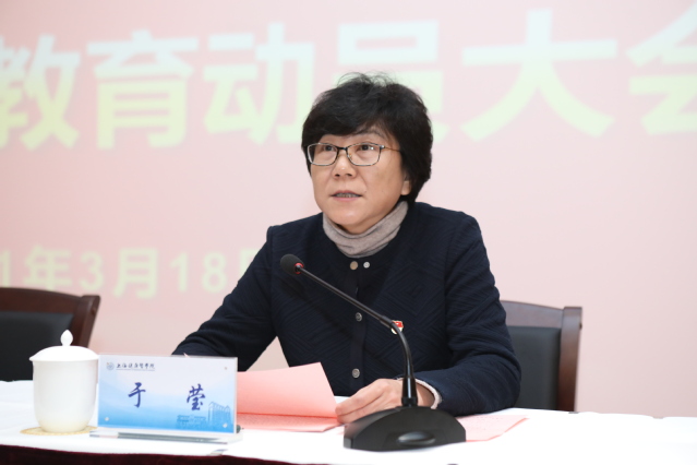 于莹在部署学校党史学习教育的主要安排中指出,学校要重点从开展专题学习、加强宣传教育、融入育人实践、为群众办实事、召开专题组织生活会五个方面着力,深入开展党史学习教育。
