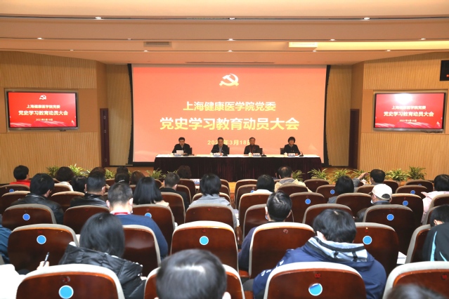 3月18日,上海健康医学院召开党史学习教育动员大会,深入学习贯彻习近平总书记在党史学习教育动员大会上的重要讲话精神,贯彻落实中共中央《关于在全党开展党史学习教育的通知》精神以及市委、市教卫工作党委的有关要求和部署,对全校开展党史学习教育进行动员部署。全体校领导、中层干部、各级党组织负责人、党建员和师生党员代表参会。校党委副书记、纪委书记李明磊主持会议。