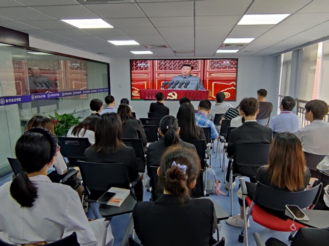 上海健康医学院党委理论学习中心组成员、全体中层干部、劳模代表、民主党派代表、全体辅导员和学生代表一起,满怀激动喜悦的心情,在北苑1号楼200人报告厅集体收看庆祝大会实况转播。同时,各二级党组织充分利用本单位现有条件,组织本单位干部职工和党员学生收看收听,离退休老同志在家收看收听,热烈庆祝中国共产党百年华诞。