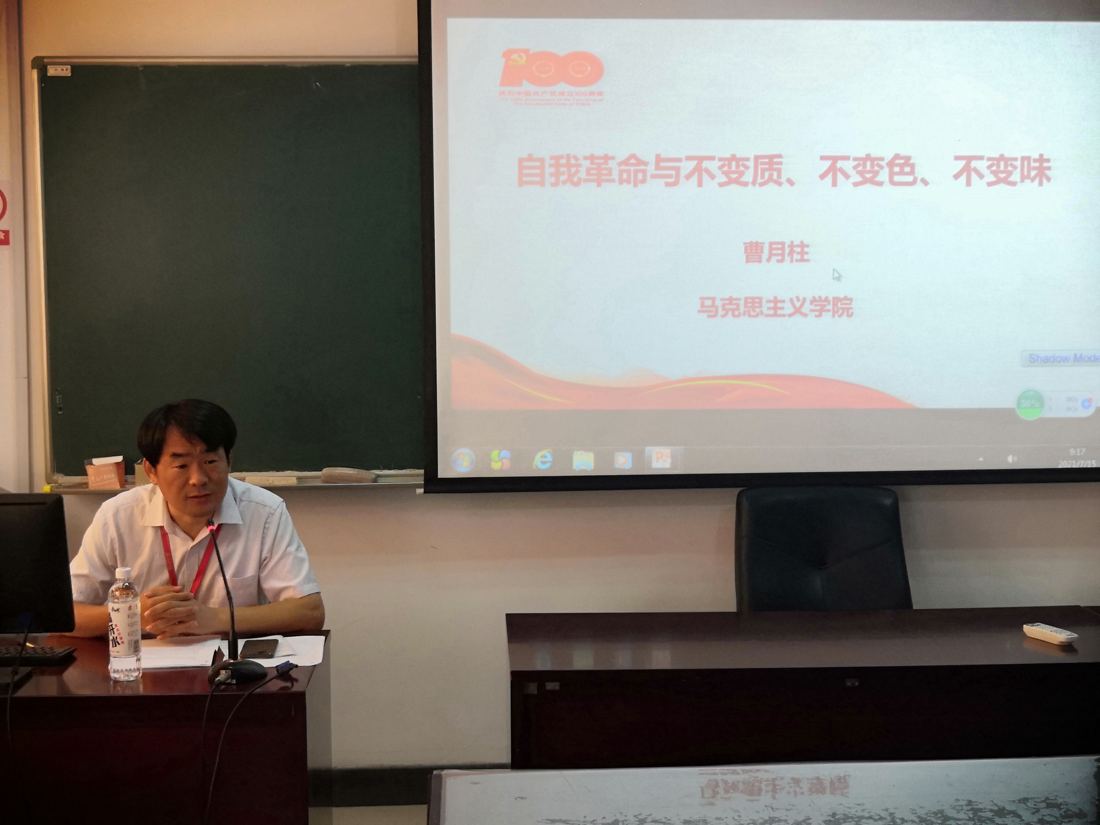 为深入学习习近平在庆祝中国共产党成立100周年大会上的重要讲话精神,7月15日上午,基础医学院直属党支部特邀市教卫工作党委党史学习教育专家宣讲团成员、我校马克思主义学院副院长曹月柱老师来学院,为全体教师作了“自我革命与不变质、不变色、不变味”的专题辅导报告。