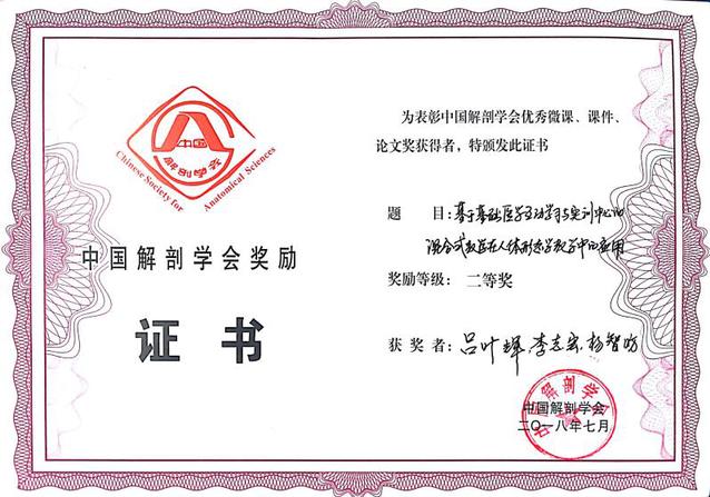 2018年7月20-24日,在哈尔滨举办的第14届中国解剖学会护理解剖学分会年会中,我院吕叶辉、李志宏等老师的论文“基于基础医学互动学习与实训中心混合式教学在人体形态学教学中的应用”荣获二等奖。